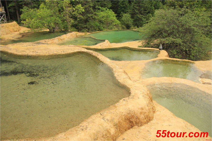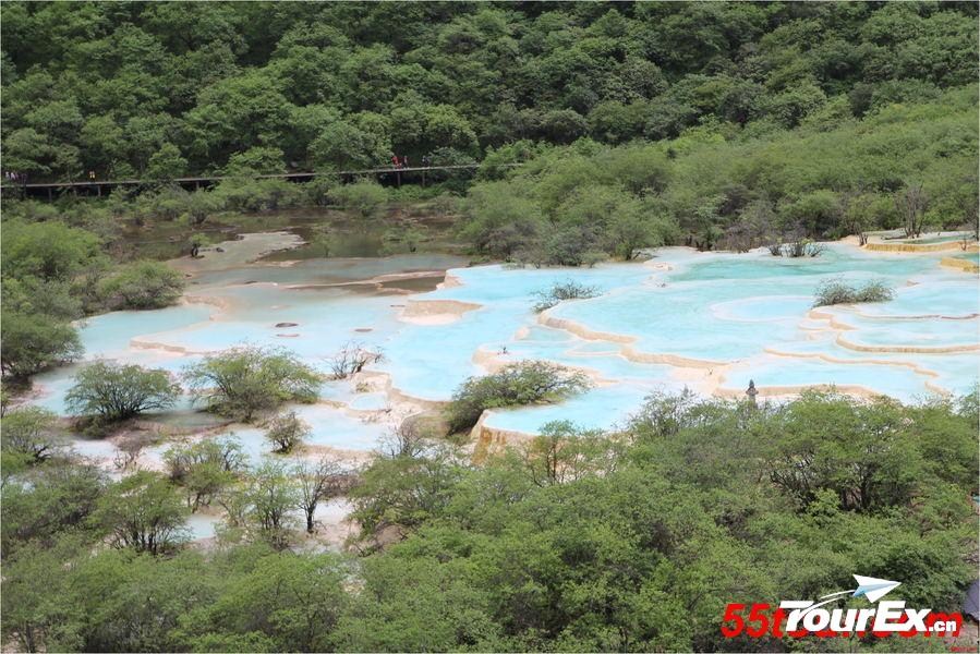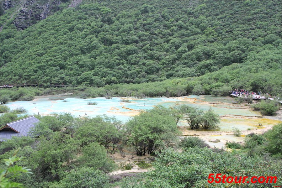 2900米到达黄龙主景区五彩池,游览后沿下山栈道,一路观看黄龙景点。返回黄龙景区大门口。
